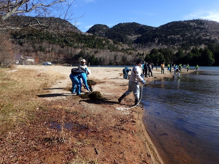 湯ノ湖コカナダモ刈取及び湖畔清掃