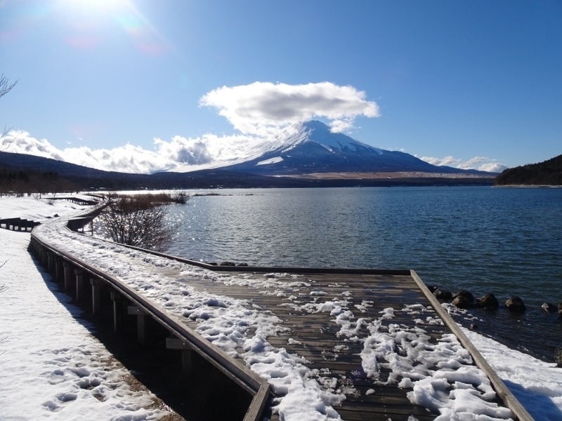 山中湖では12月から2月に掛けて山中湖村内でポイントを移動させながら、ダイヤモンド富士を見ることができます。特に湖畔から撮影できる1月下旬から2月にかけては、三脚を抱えた多くのカメラマンを見掛けます。