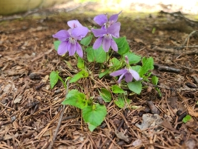 一番多く見られるスミレです。花弁の紫におしべの山吹色がかわいいです。今年は泉門池周辺に群生している場所があり、一つ一つの花をいつまでも見ていられます。