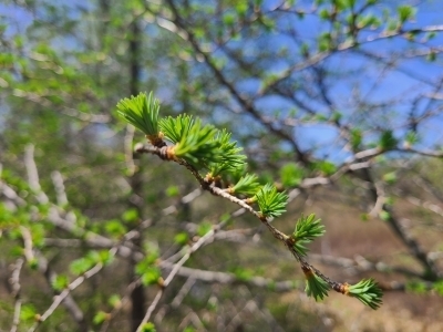 戦場ヶ原の針葉樹の代表ですが、新緑の出始めた今のカラマツを優しく撫でてみると柔らかくて触っていて心地よいです。トゲトゲに堅くなるまでの今の時期がチャンス。これが秋には金に色づくのかと思うと、一年のどの季節も見逃せないな~と言う気持ちになりますね。