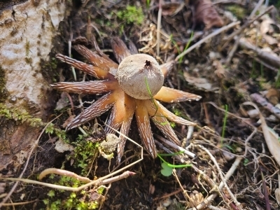 こちらはキノコの仲間。形が面白過ぎる!放射状に伸びた外皮は、乾燥した日には閉じてしまうそうです。確かに見つけた日は朝露でしっとりしていた気がします。