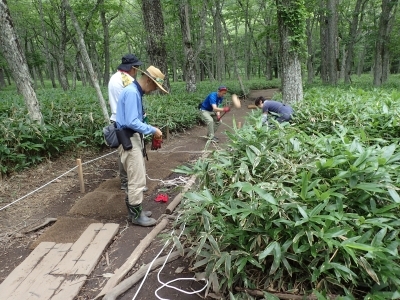 季節はすっかり「冬」になってしまいましたが、今年の夏を思い返すと奥日光も暑い夏でした。気象庁のアメダス(奥日光の中禅寺湖周辺)による最高気温を見ても、30度になる事はほぼないので日陰で静かにしていれば涼しい風がそよぎ快適そのものです。とは言え夏の日差しには厳しいものがあり、動いていると汗は止まりません。このような夏に実施した日光パークボランティア(以後NPVとします)の活動の一つについてお伝えしましょう。