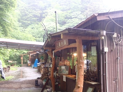 三条の湯で休憩後、後山林道を約10Km、雨に打たれながら3時間程度で鴨沢バス停到着。