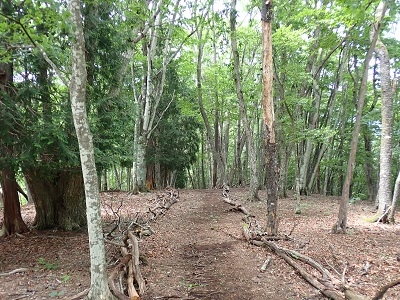 山頂が平坦で下山口を見つけるのが難しい地形なため、迷いこみやすい場所を特定して、倒木・落枝等を利用し、下山口がわかりやすいよう整備を行いました。