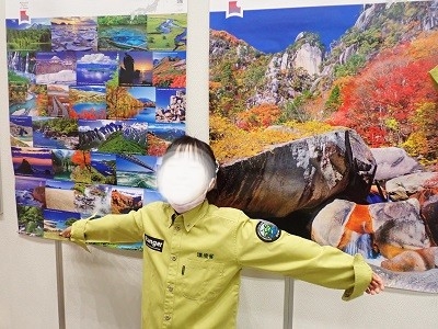 国立公園ポスターの前で写真撮影をしてもらいました。