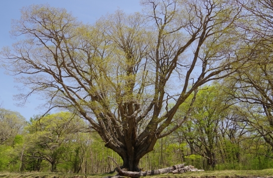湖畔には「千手楢」と呼ばれるミズナラの巨木が立っています。一部では「楢木大王」とも呼ばれているようです。実際、見てみると確かに大王の名がふさわしい感じがします。静かに我々を見下ろし立ち続けています。