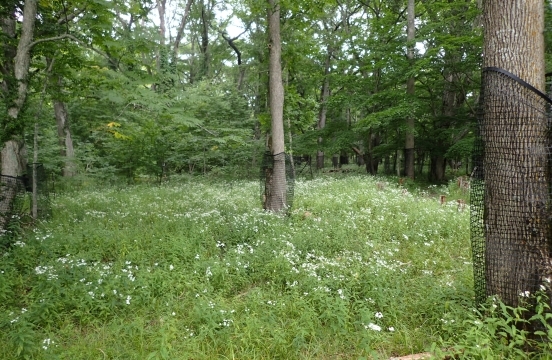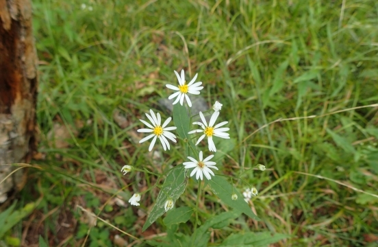 シロヨメナです。8月から9月にかけて、森では多くの種類の植物が見られ、何種類かの花が咲いているはずなのですが、シロヨメナ一色になっているのが目につきます。このような状態も鹿の食害によるものと考えられます。シカが選択して食べなかった植物が一面を覆うようになるのです。