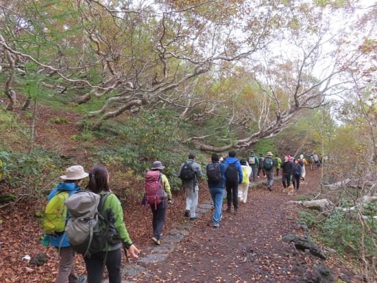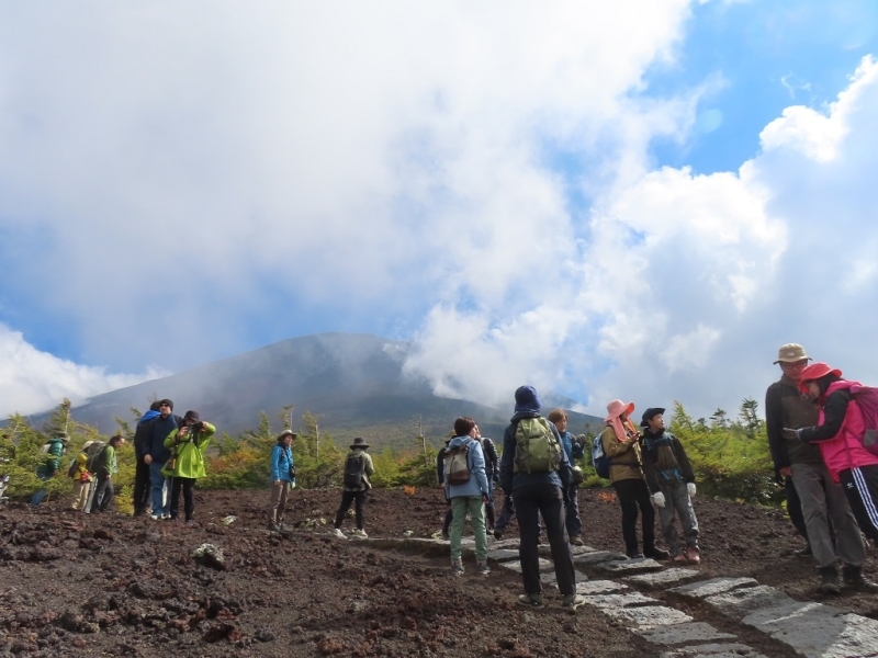 9月10日で富士山が閉山してから1ヶ月程経ち、富士山中腹の木々が幾分色づき始めた10月12日(土)に、「「山の日」御中道ハイキング」を開催しました。