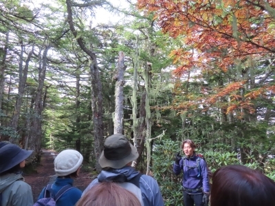 今年は夏の猛暑や台風、秋の気温の高さが影響したのか、紅葉の始まりは富士山中腹でも遅く、私たちが訪れた時には、まだ葉がわずかに黄色く色づき始めたばかりで「秋真っ盛り」ではありませんでしたが、ガイドの岩崎さんの楽しい自然解説に耳を傾けながら、普段は見過ごしてしまう自然に目を向け、参加者の皆さんにとって、様々な発見のある一日になりました。