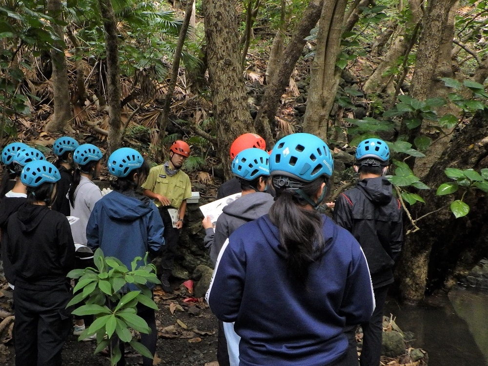小笠原高等学校の一年生は、世界自然遺産の地における自然保護活動について理解を深めることを目的に、一学期間にわたる探求的な学習に取り組んでいます。例年同様、環境省も講師として参加し、授業を通じて保全の取り組みを紹介したほか、兄島への訪問の際も高校生たちを引率しました。