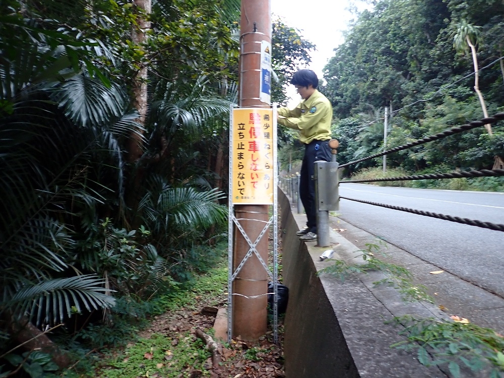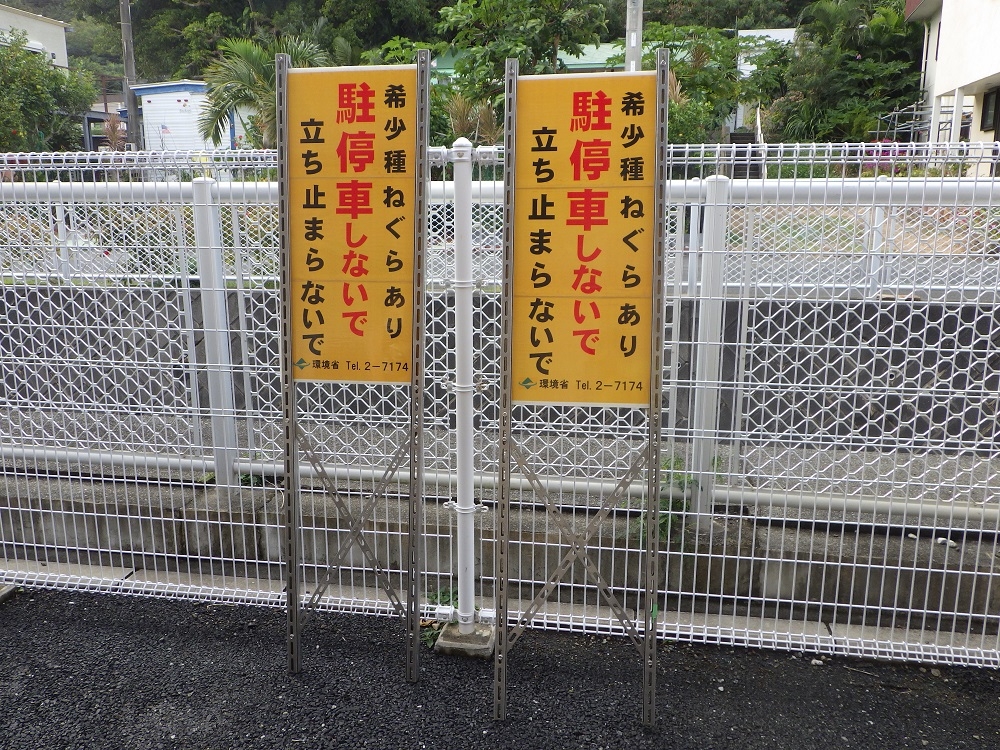 観察のための車の駐停車や、歩行者が立ち止まっている状態が、オガサワラオオコウモリの生息や繁殖に影響を与える可能性があるため、看板を設置して注意を呼びかけることになりました。