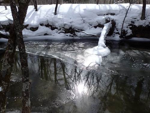 戦場ヶ原を流れる湯川にも氷が張っています。(2/24撮影)