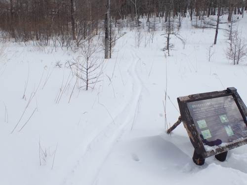 小湿原と呼ばれている辺りです。木道からスキーの跡が湿原に延びています。これはものすごく残念なことです。