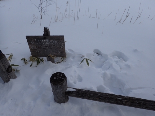 こちらは展望台の柵の隙間から湿原に入り込んだ足跡です。看板には「美しい自然の姿をいつまでも見守っていてください」と書かれています。(看板の文字がかすれているのは私たちが反省すべき点です。)