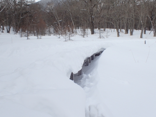 気象庁が12月下旬に発表した3か月予報は、「1月は平年並みか低い気温、2月は平年並みの気温、3月は平年より高い気温」でした。奥日光の1、2月はこの予報通り、ここ数年の中では寒く積雪の多い冬になり、2月13日には戦場ヶ原で激しい地吹雪が発生していました。戦場ヶ原や小田代原の木道は雪で埋まり、日光湯元温泉では除雪した雪を置く場所に苦慮する状態です。