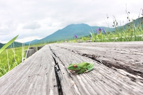 木道を歩いているととても綺麗なカエルがいました。