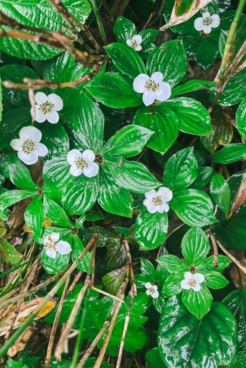 お花が濡れて綺麗に撮れます。(#ゴゼンタチバナ)
