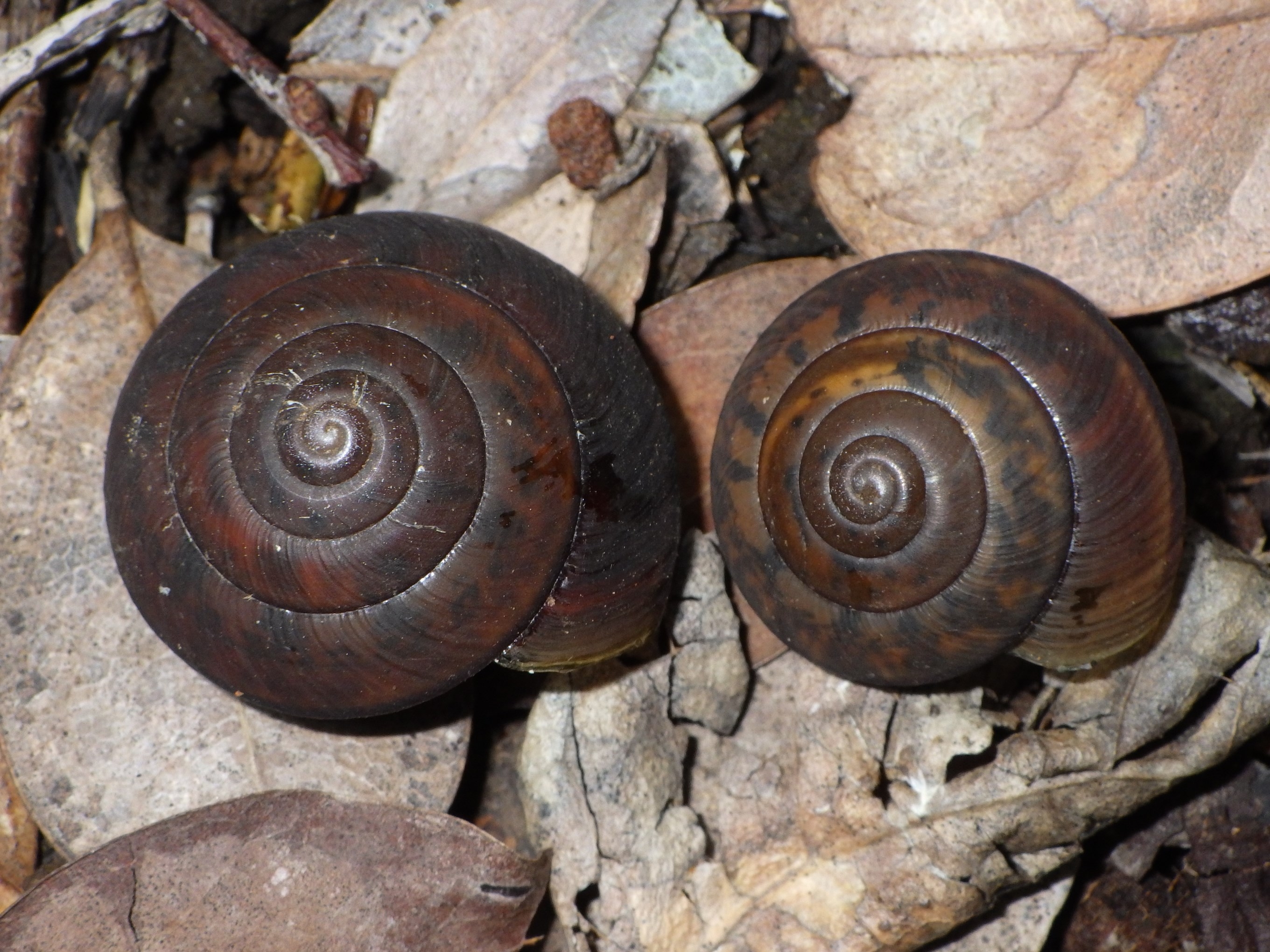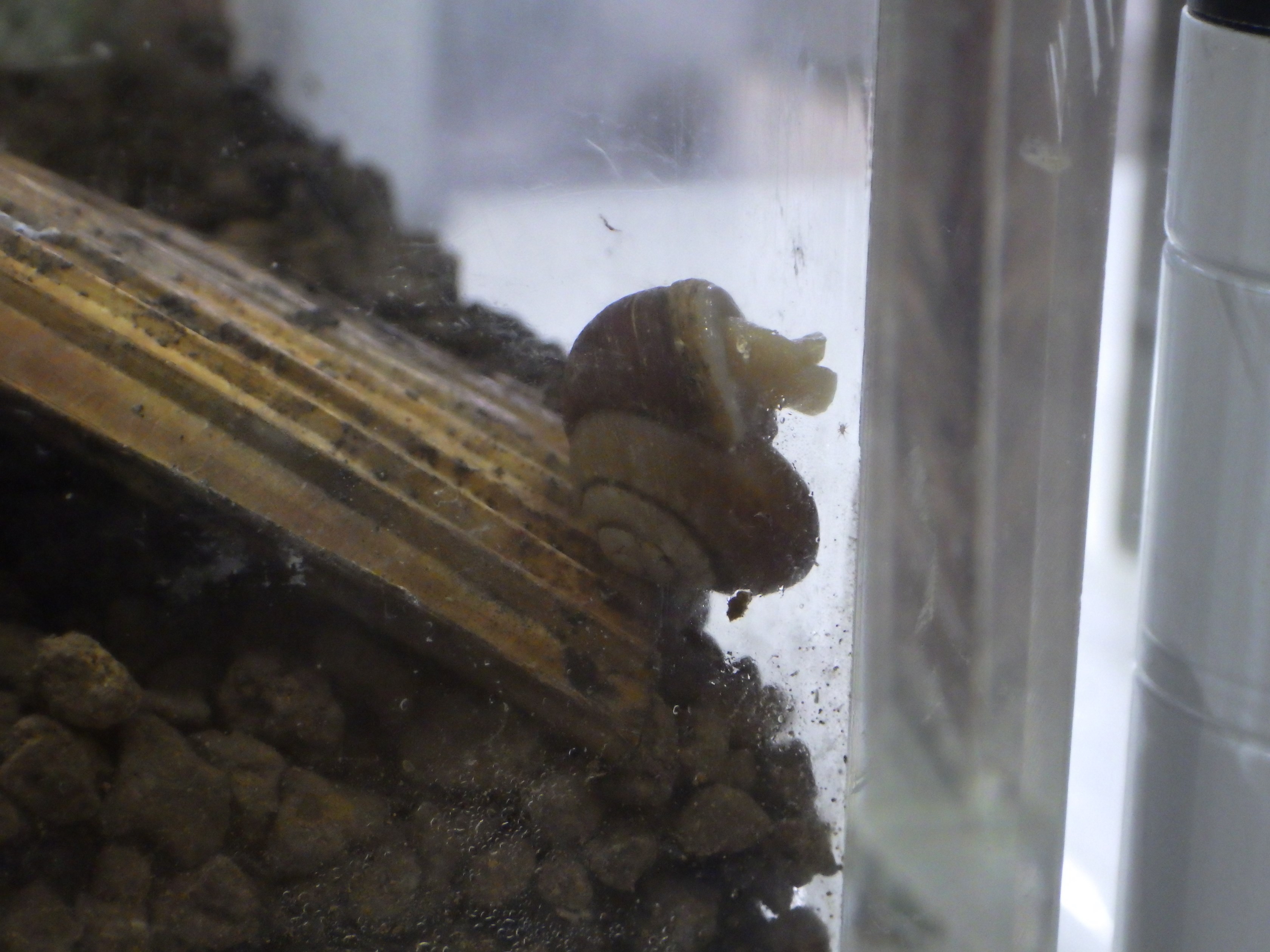 A:ウスカワマイマイ、ミヤコマイマイ、オキナワベッコウマイマイなどの可能性があります。いずれも外来種です。