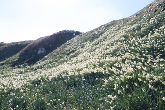 池の段ビーチのある爪木崎(つめきざき)では、冬になるとスイセンまつりが行われます。