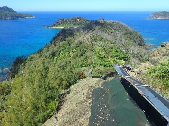 小笠原国立公園では、グリーンアノール等の外来生物等から固有種を保護するための侵入防止柵の整備を行っています。