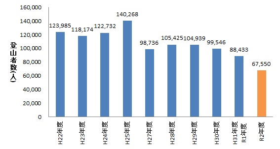 令和2年度の登山者数は、67,550人となりました。(前年度比約76%)