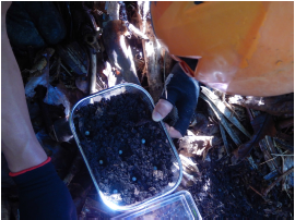 卵による移殖の様子(現地にてカゴ内に埋設)