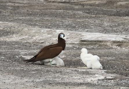 - 特にカツオドリにおいては、これまでに繁殖の記録のなかった北部のエリアでも営巣が確認され、繁殖域の拡大を確認できました。一方で昨年は多数観察されたセグロアジサシは、個体数が激減しており繁殖も確認できませんでした。