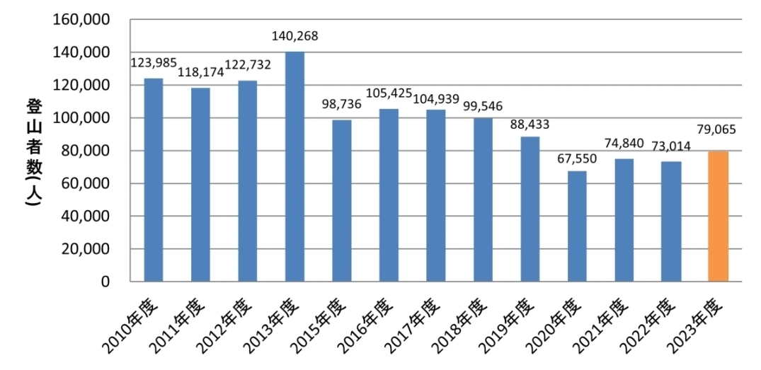 2023(令和5)年度の登山者数は、金時山は79,065人となりました。