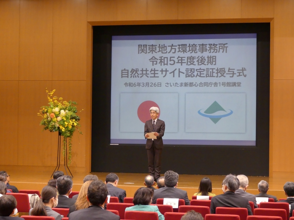 令和6年3月18日(月)に令和5年度後期分として環境大臣認定を受けた自然共生サイトのうち、関東地方環境事務所管内に位置する20か所に対し、埼玉県さいたま市において「関東地方環境事務所令和5年度後期自然共生サイト認定証授与式」を3月26日(火)に執り行いました。
