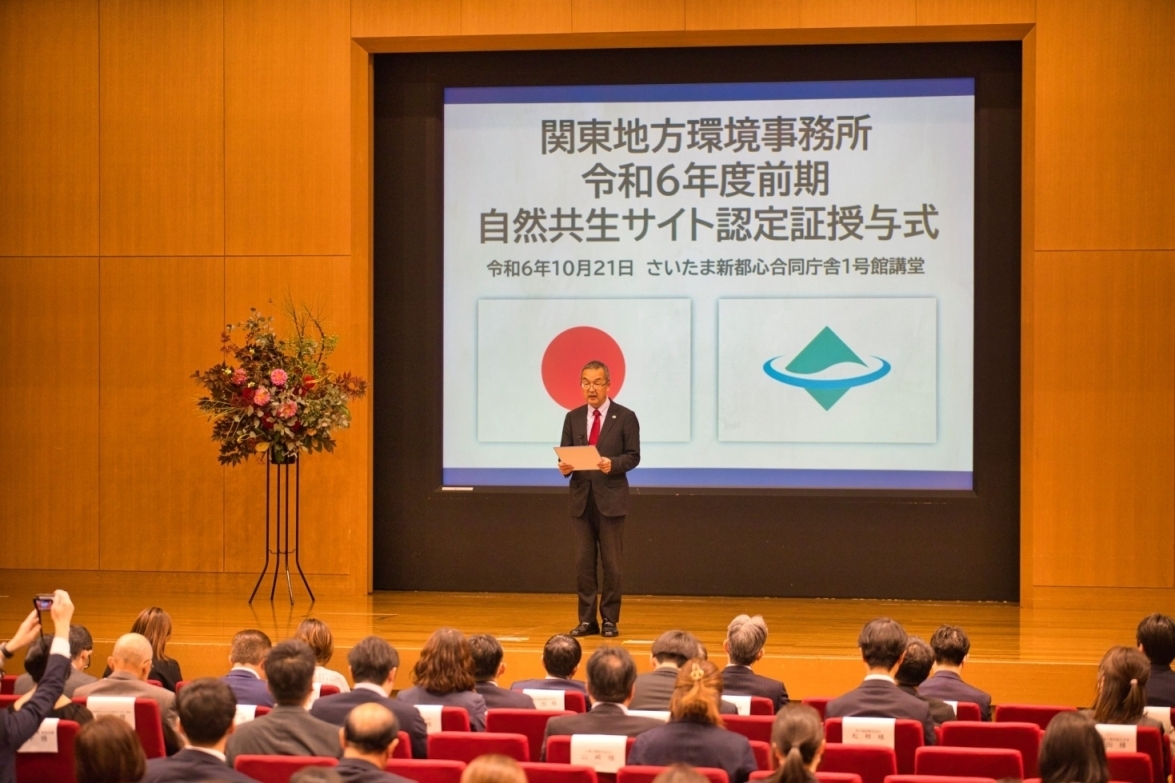 令和6年10月21日(月)に令和6年度前期分として環境大臣認定を受けた自然共生サイト69か所のうち、関東地方環境事務所管内に位置する20か所に対し、埼玉県さいたま市において「関東地方環境事務所令和6年度前期自然共生サイト認定証授与式」を執り行いました。