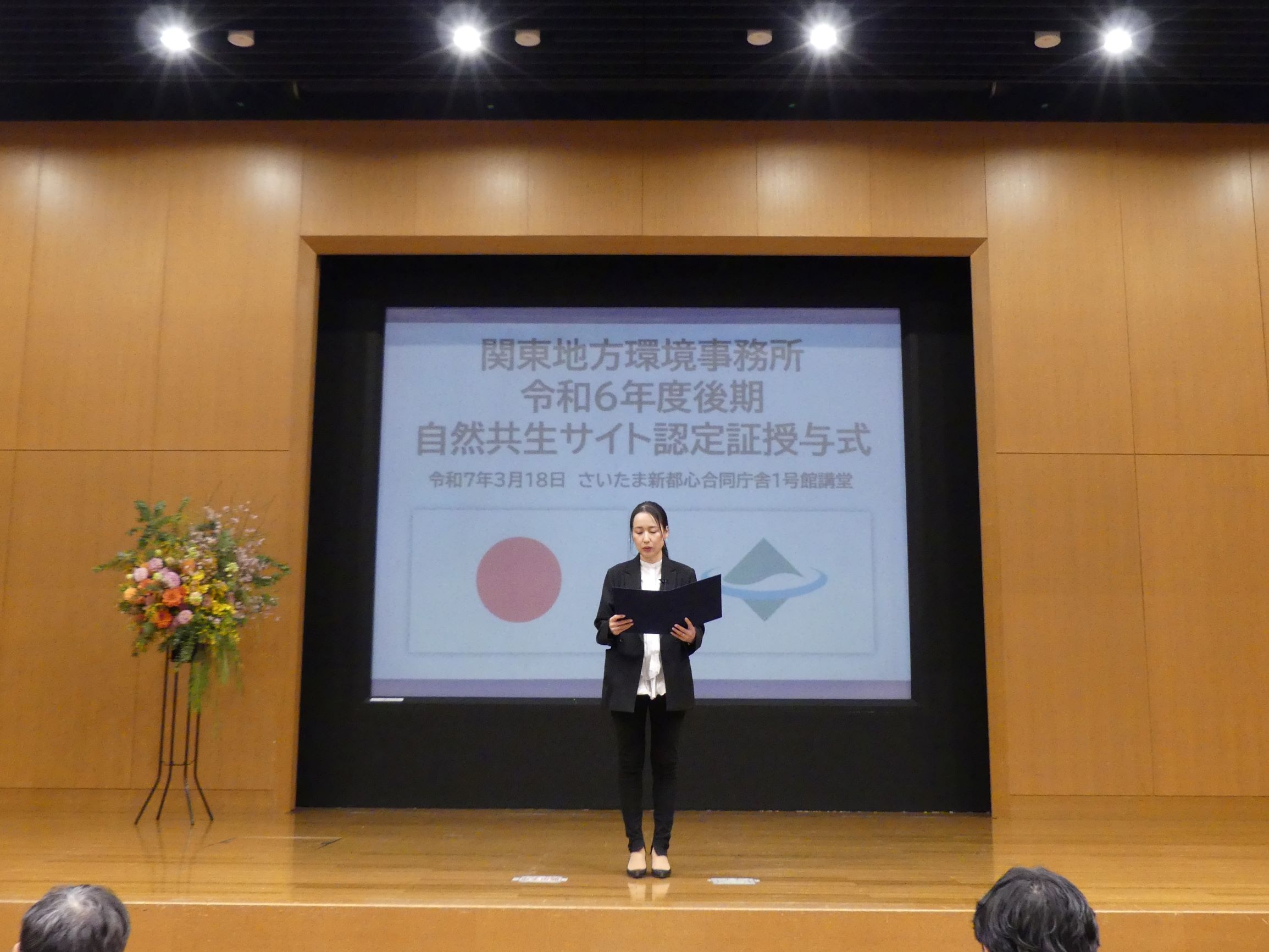 令和7年3月18日(火)に令和6年度後期分として環境大臣認定を受けた自然共生サイト75か所のうち、関東地方環境事務所管内に位置する21か所に対し、埼玉県さいたま市において「関東地方環境事務所令和6年度後期自然共生サイト認定証授与式」を執り行いました。