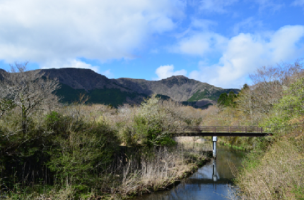 ここから早川沿いに少し進みます。橋の向こうには外輪山の金時山や丸岳が大きくそびえます。橋を渡ってUターンするように右折し、川沿いを歩きます。坂道を一つ越え、左の林へ入って石畳を上り詰めれば、仙石原浄水センターの前、間もなく別荘地内を通過します。湿原通りの車道へ出て10分ほど歩くと、終点の箱根湿生花園に到着します。